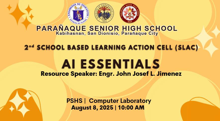 Second School-Based Action Cell: AI Essentials Last August 8, 2025, our teachers had an enlightening and engaging seminar on AI Essentials, led by no other than our esteemed Resource Speaker from Bahrain, Engr. John Josef L. Jimenez. See more…